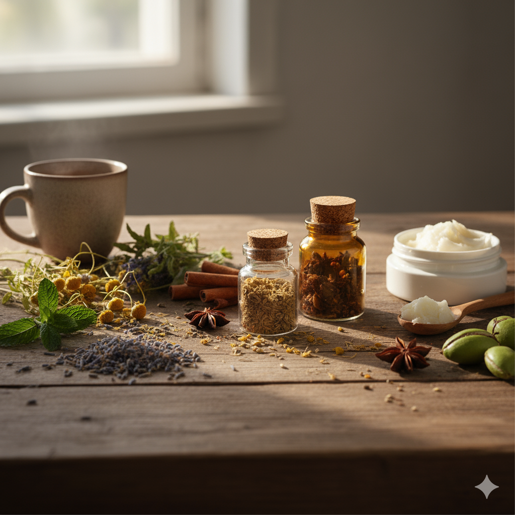 Unsere Tees, Öle, Balms und Ritualprodukte basieren auf Pflanzenkraft und purer Einfachheit — ohne komplizierte Formeln, ohne unnötige Zusätze.